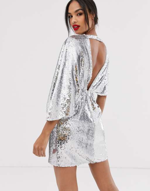 Asos Design Vestito Corto Con Paillettes E Maniche Asimmetriche A Kimono Asos