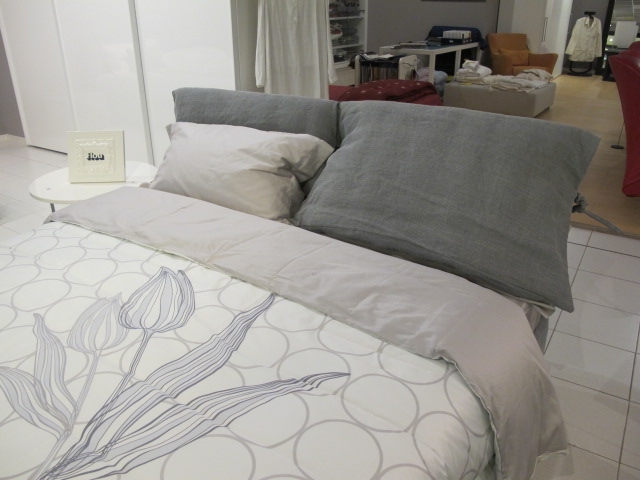 Il letto matrimoniale nathalie di flou è in esposizione e vendita nei negozi di arredamenti e illuminazione.